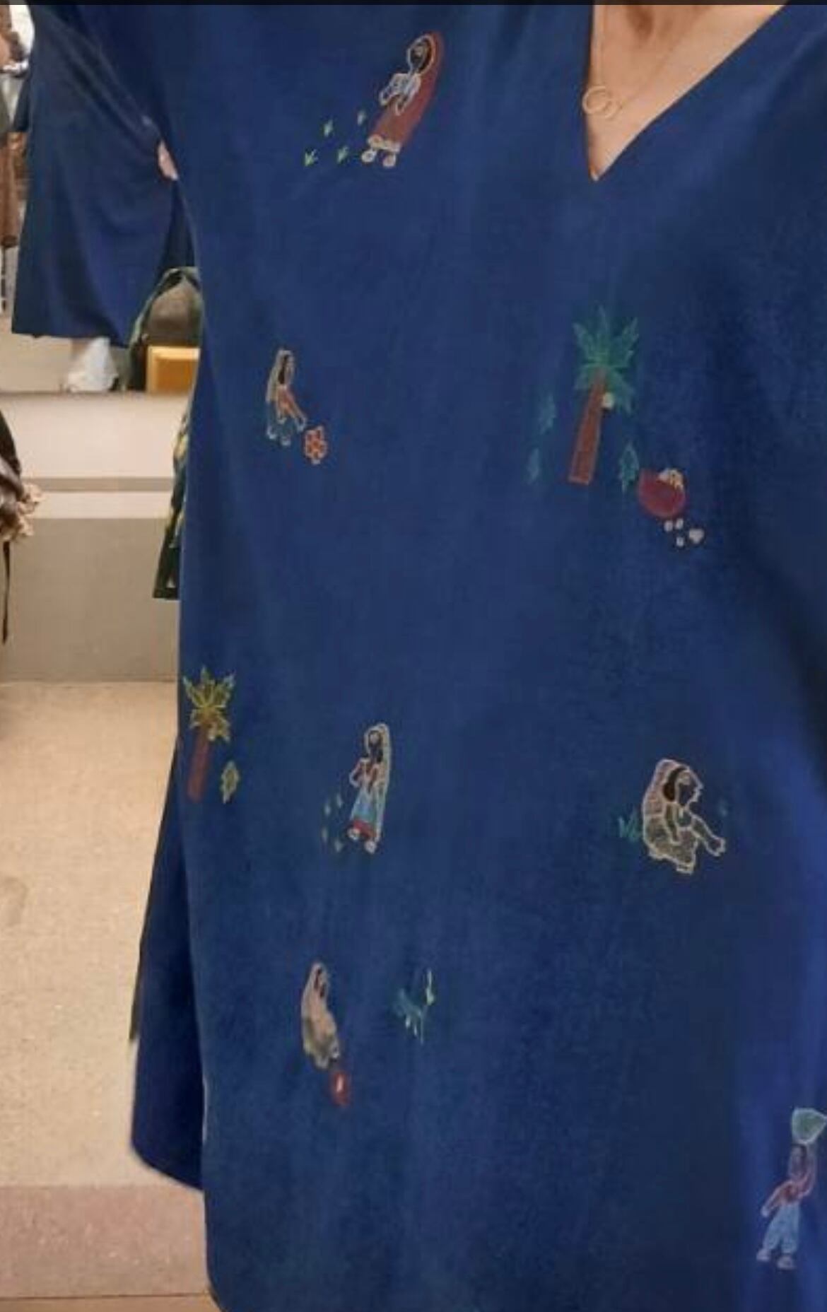 壁画に描かれている絵の様なタッチの刺繍で優しい雰囲気。