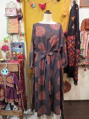 ajurakh 手染め 紐 コットン ワンピース(AJ-SOPS1)