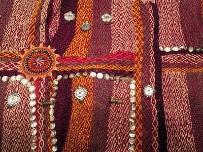 後ろ側のトリミングは同じくカッチ地方の染色集団の村で染めた生地を使っています。相性がいい。