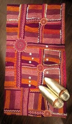 古くから彼らの作るものは茜染した赤い布の上に刺し子を施すものが多く見られます。