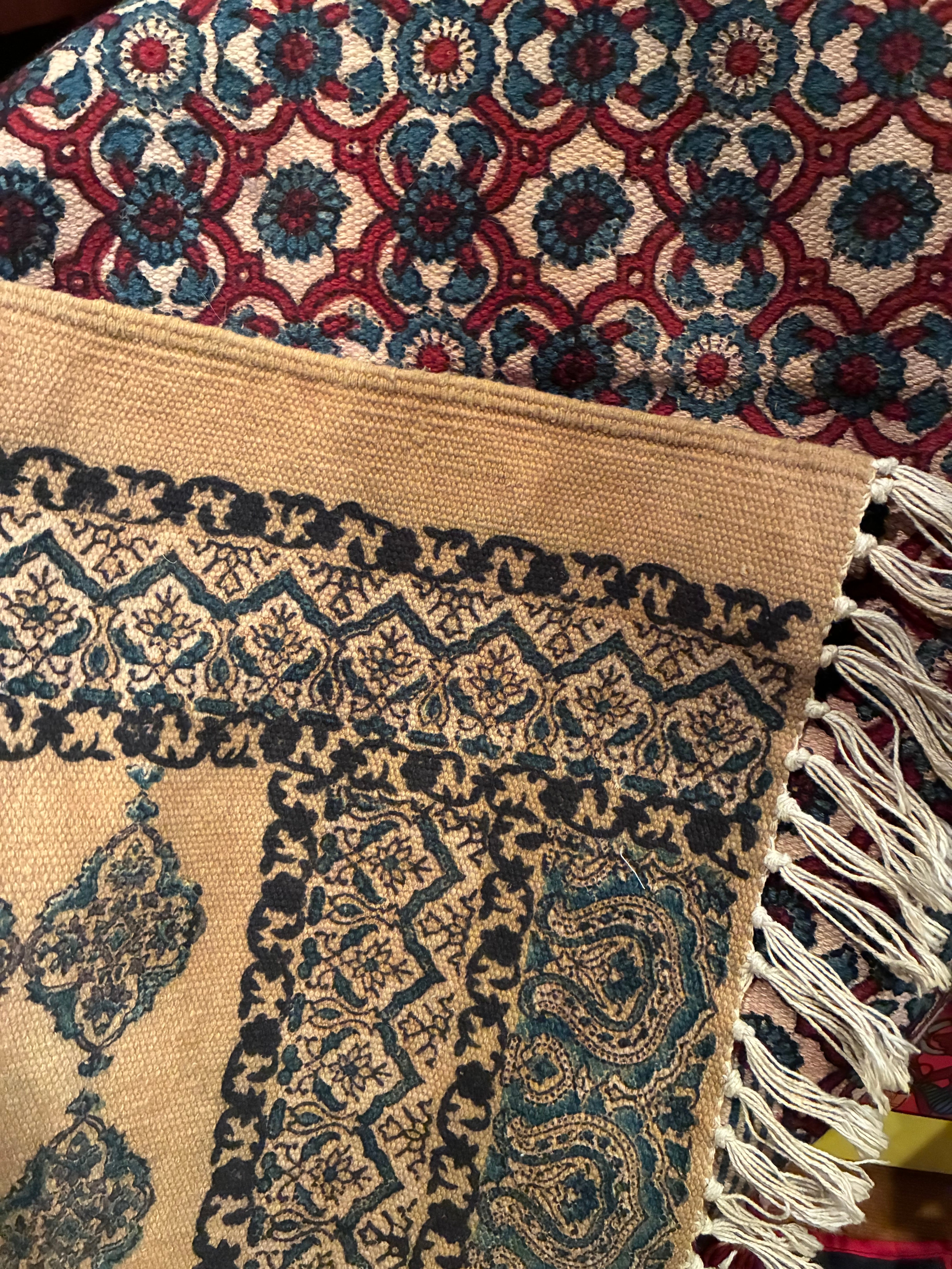紀元前後、エジプトから北西、パキスタン、ハイデラバード地方へとアジュラック、と呼ぶ藍と茜染め木版捺染布が作られるようになりました。