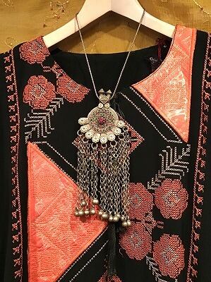 アフガニスタンのgypsyのトライバルなデザインからインスパイアされた、チャームをネックレスにしました。