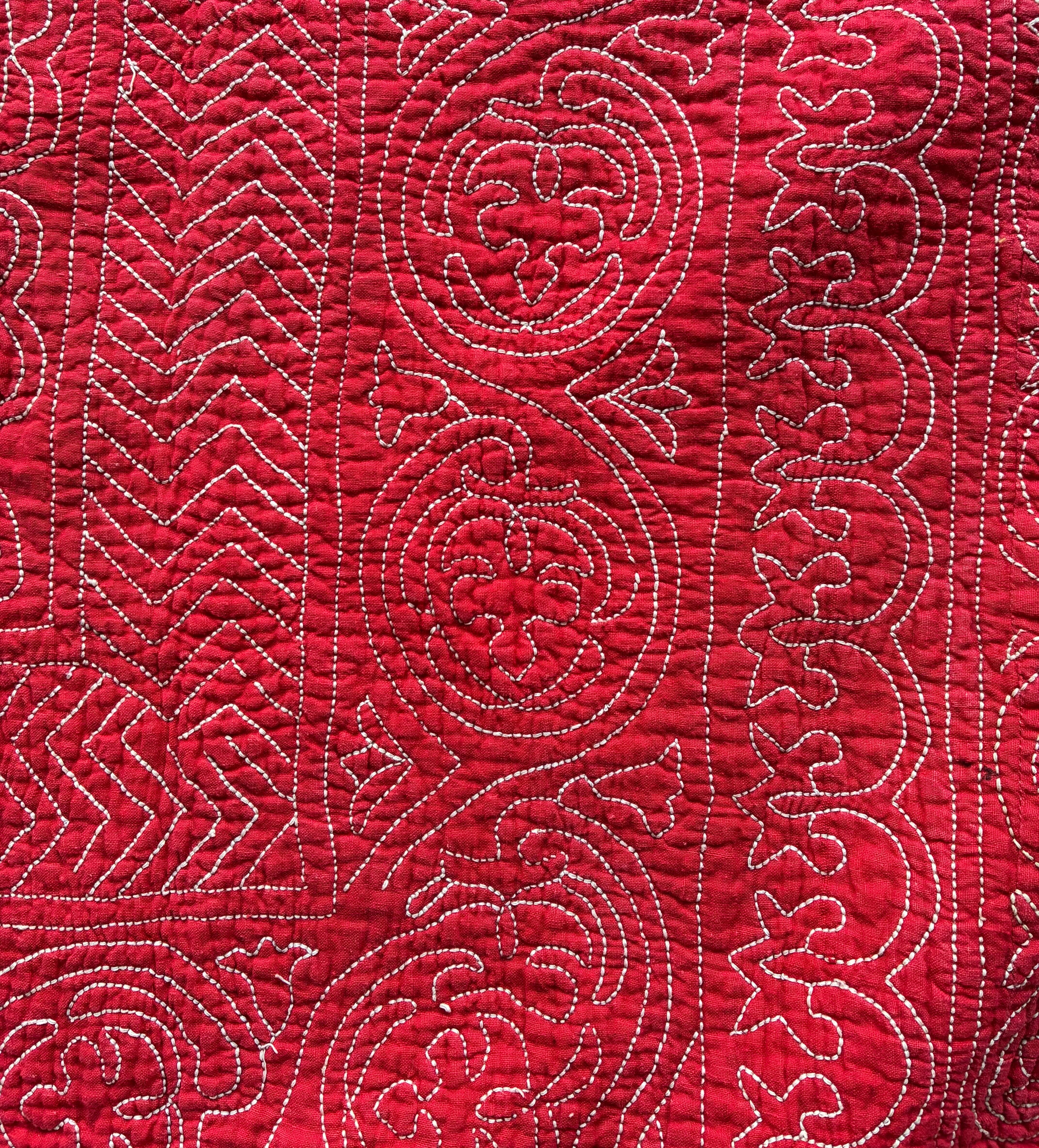 こちらは赤に白糸で刺し子された柄が綺麗に揃っていて、芸術的です。