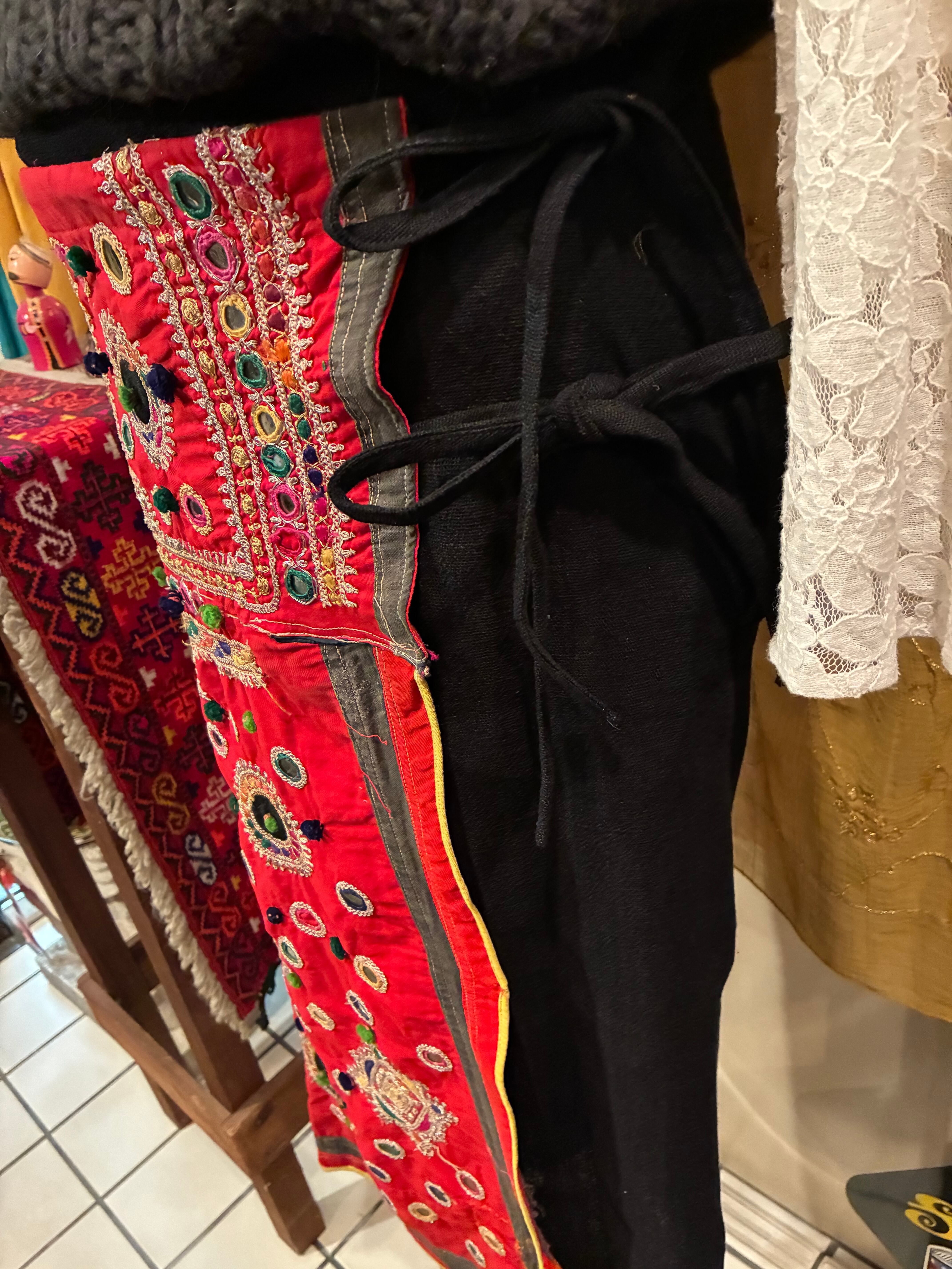 黒のコットン生地をベースに縫い合わされた雰囲気有る赤ベースのカラフルな生地は黒とのコントラストが綺麗です、特に圧縮ウールのポンポンが付いた箇所は最大のアクセント!!