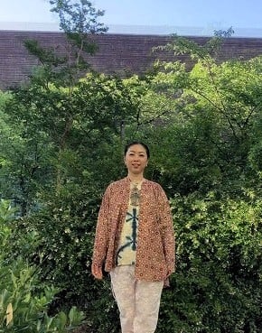 この生地はさらっと柔らかな質感、軽くて羽織りやすく、これからの季節に活躍する質と形。
