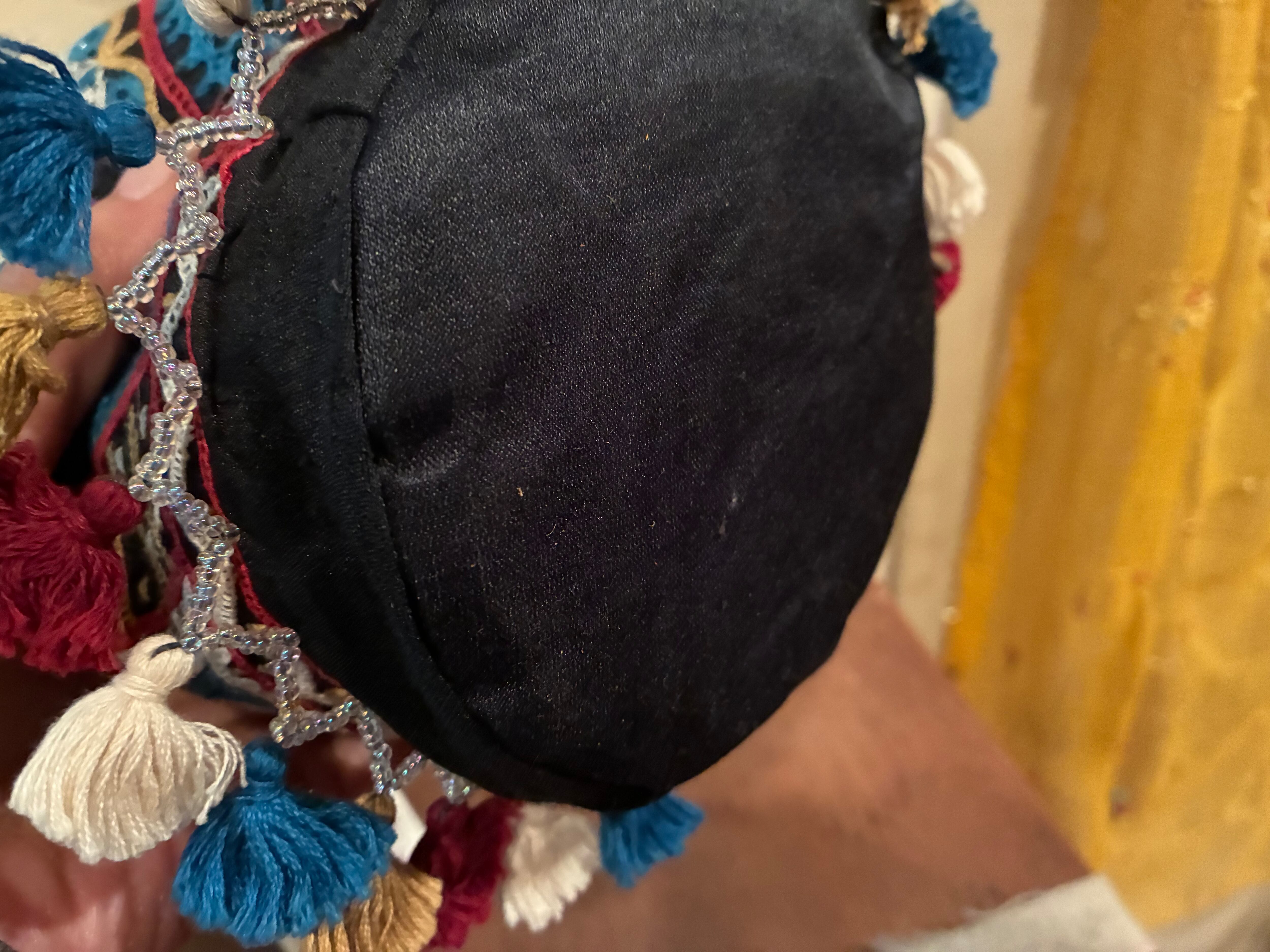 口周りの細かい刺繍や紐の先の飾り、細部まで手を抜かない独創的な刺繍が素敵です。