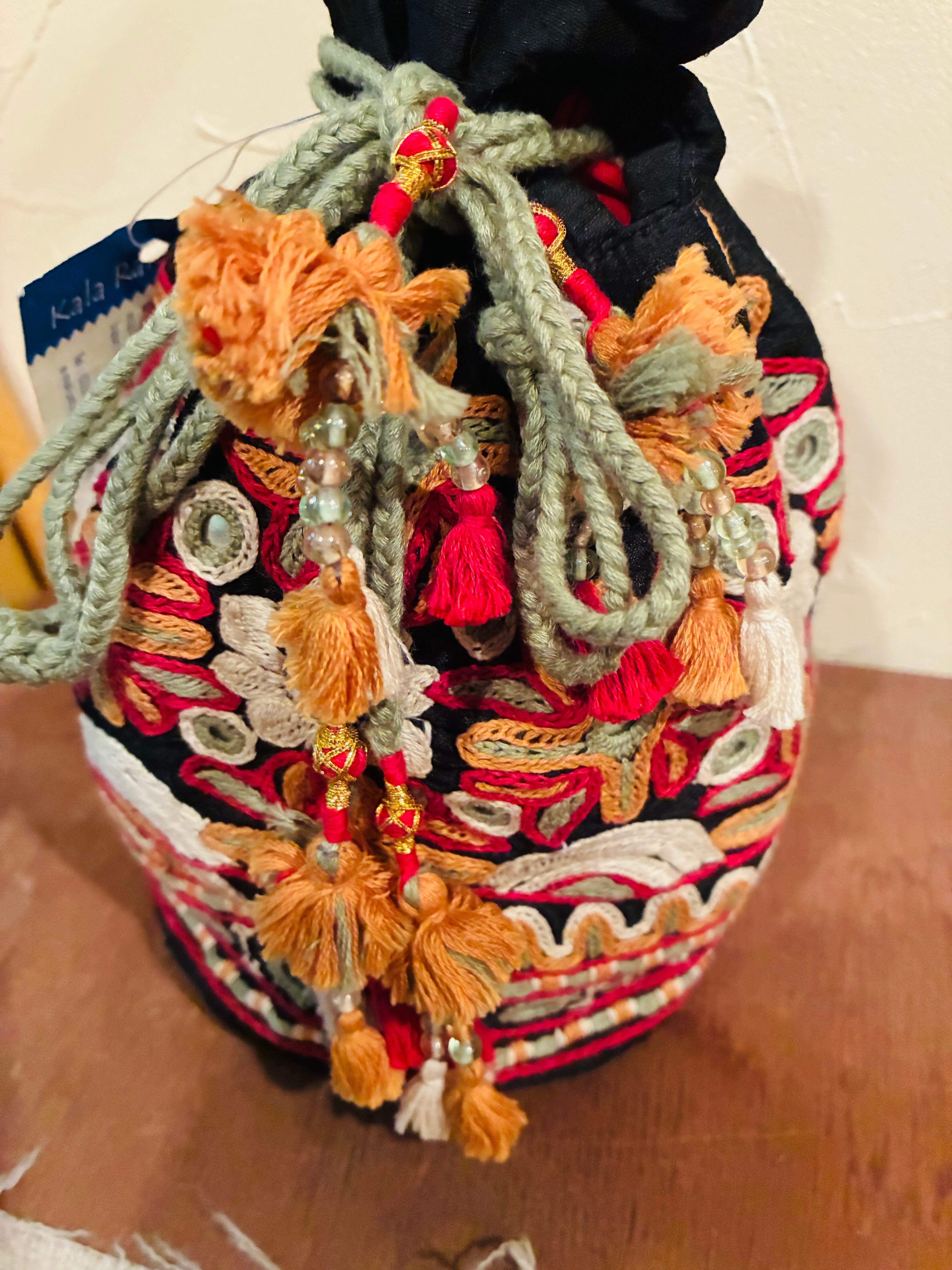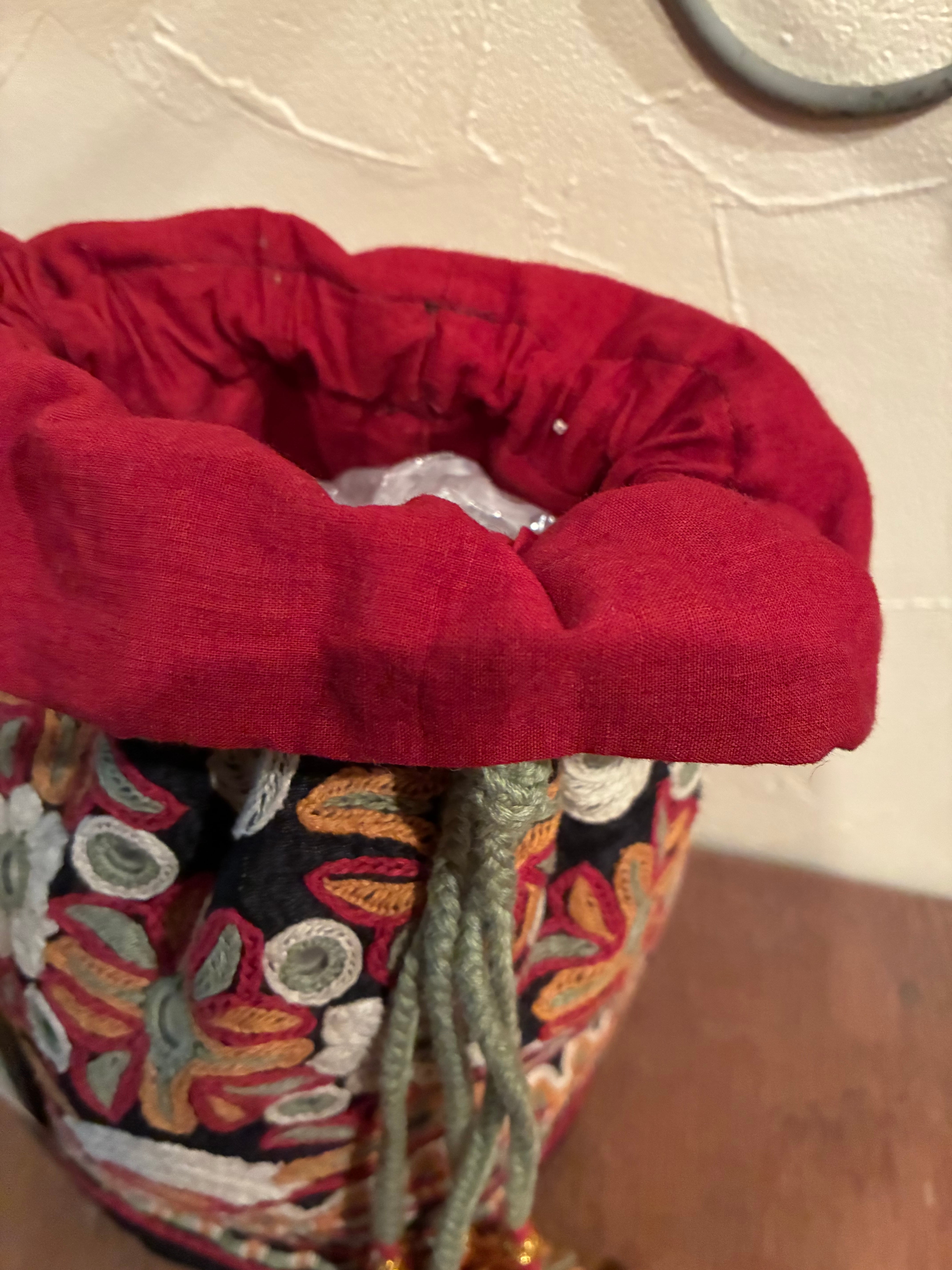 kutch ミラーワーク シルク刺繍ポーチ(kutchmi)