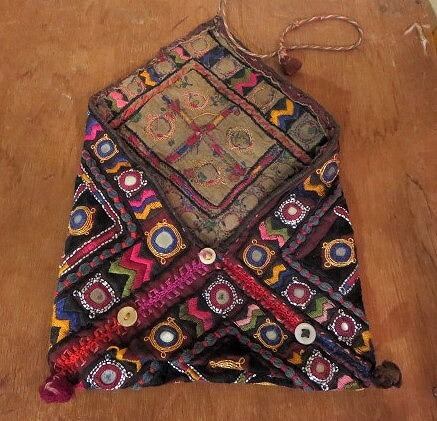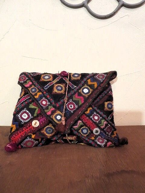 西インド,カッチ地方に定住する遊牧民の民が丁寧に刺繍を施した生地の布袋が入荷しました。