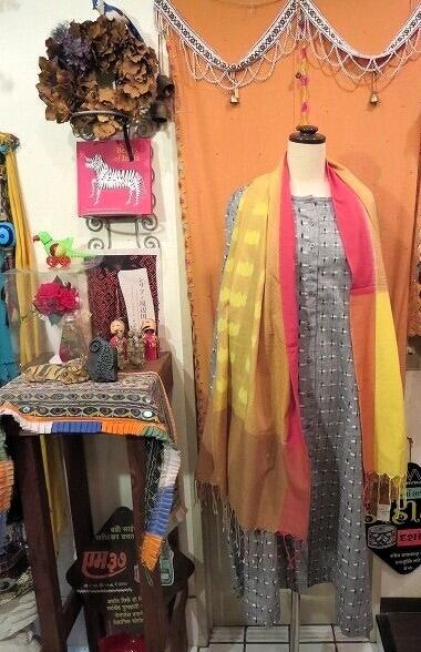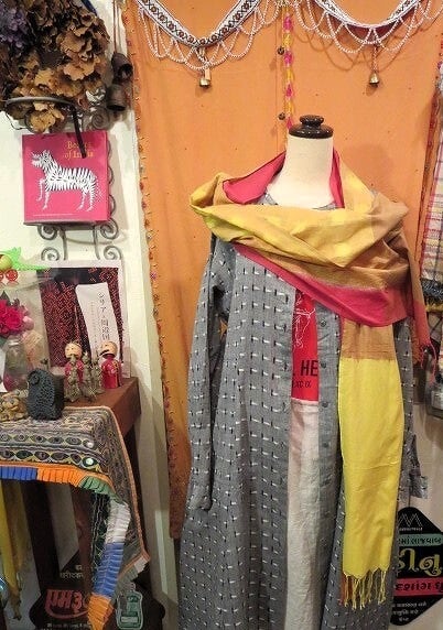 インド国内の主要都市で展開する、イカット柄を中心とするブランドから、春らしい綺麗な色のショールが入荷しました。