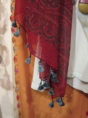 シフォンの繊細な生地を茜で染め、伝統的なイスラムプリントが施された素敵な1枚。