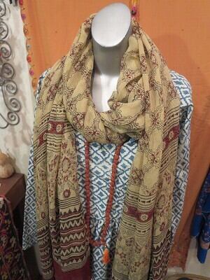 紀元前後、エジプトから北西、パキスタン、ハイデラバード地方へとアジュラック、と呼ぶ藍と茜染め木版捺染布が作られるようになりました。