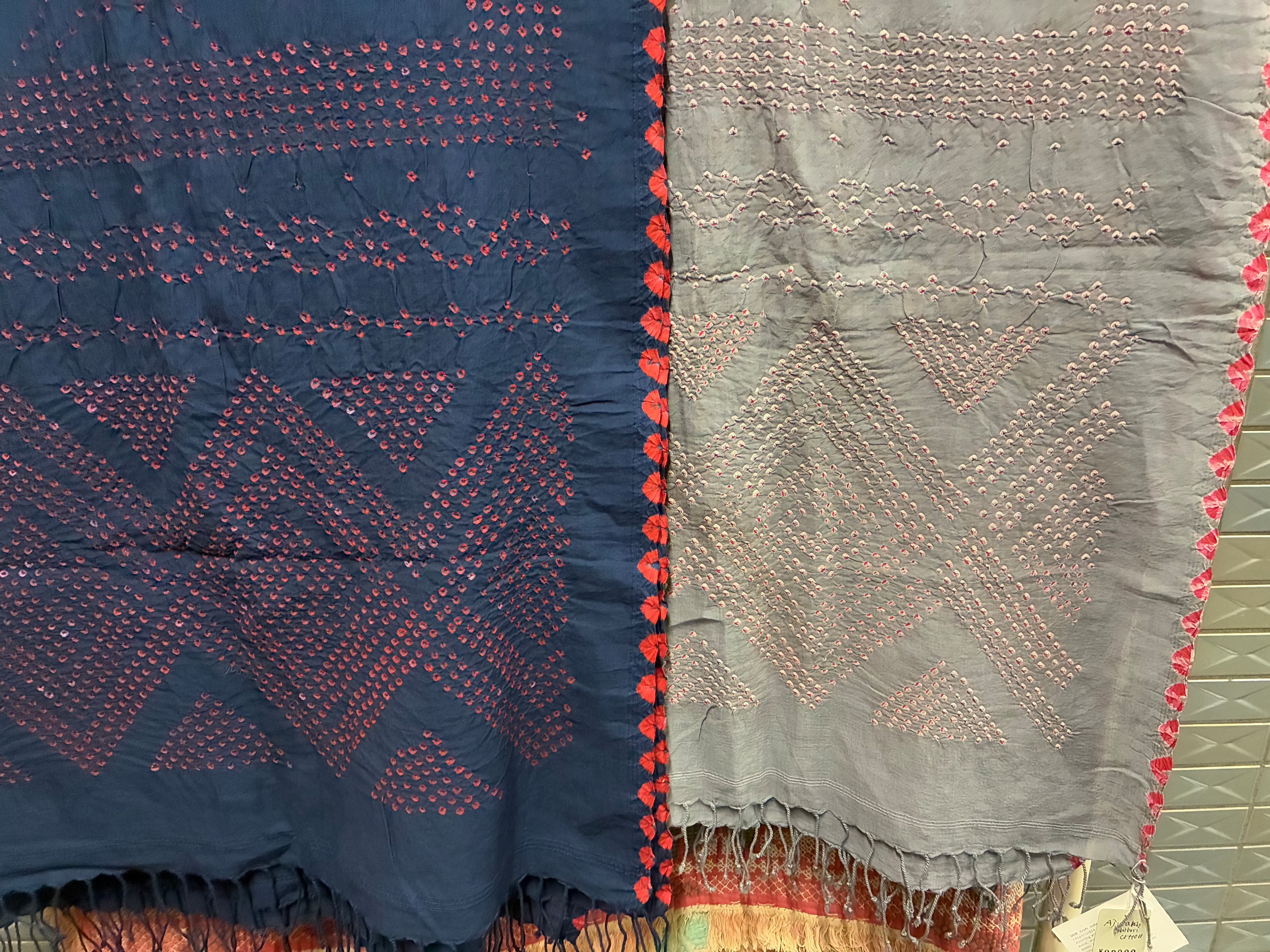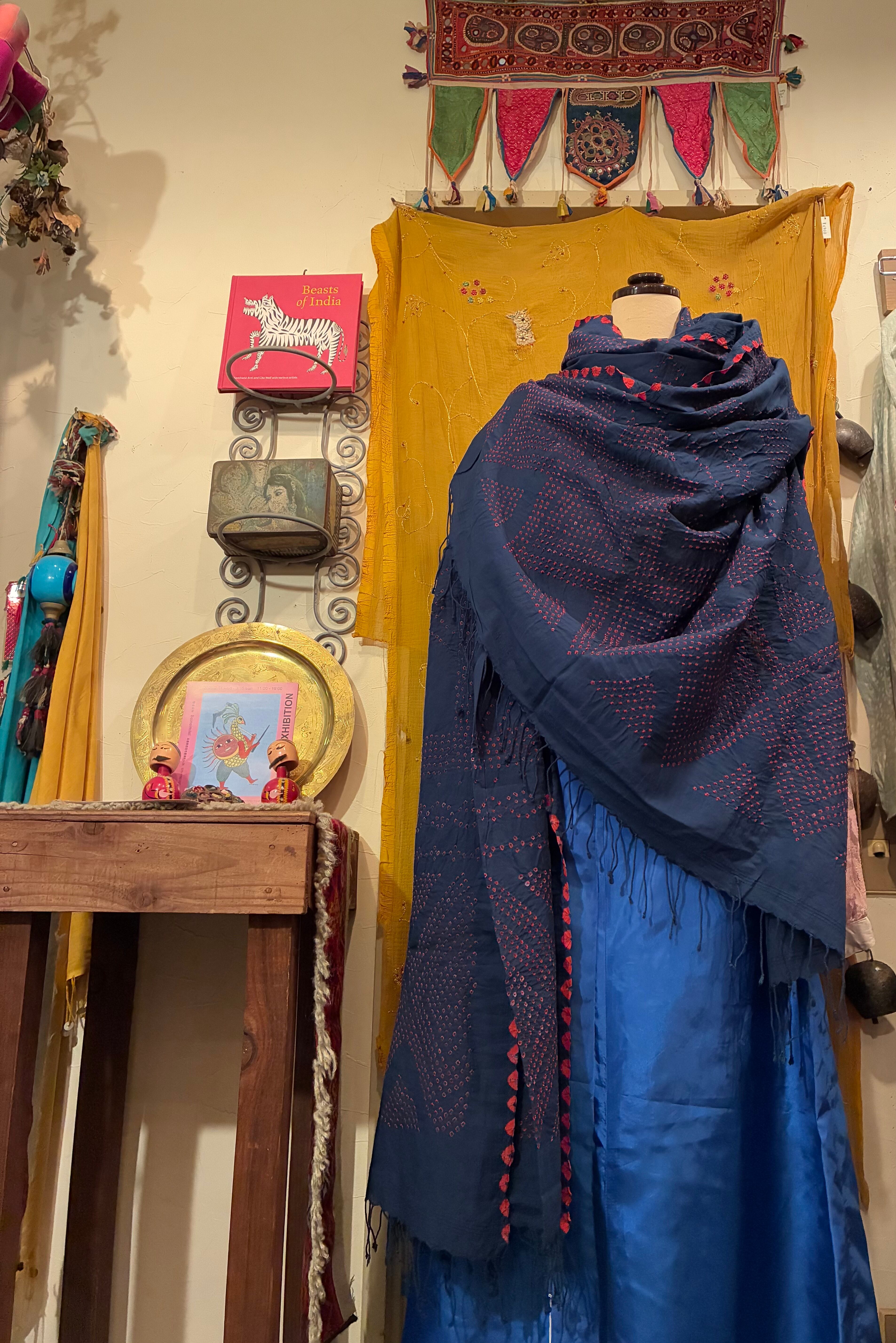 絞り(バンダニ)を中心とする染めのスタジオから。このスタジオの手仕事の技術は今や世界中の職人が注目している程。