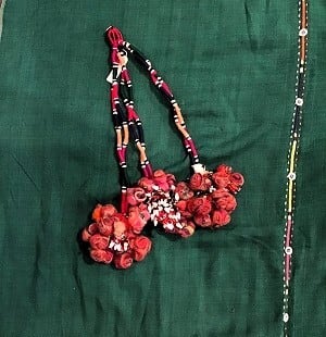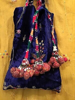 本来はお祭りなどの衣装の一部として装飾するために作られたもの。そして、こちらのタイプはその西のアフガニスタンから布や作物、その他の輸入ものと同じくインドにたどり着いたもの。