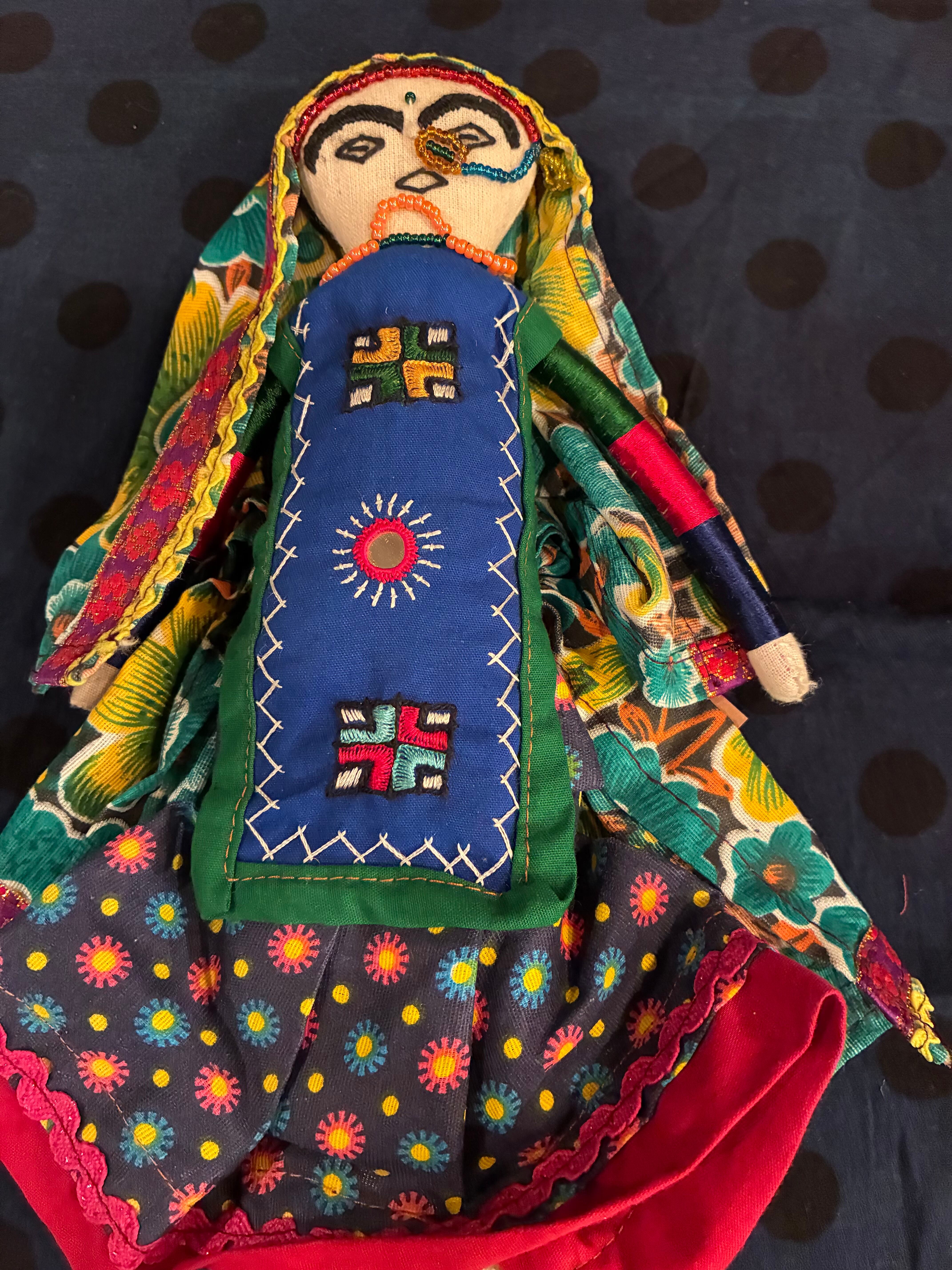 ビーズのアクセサリーを含め全て手仕事で笑顔の表情が素敵です。