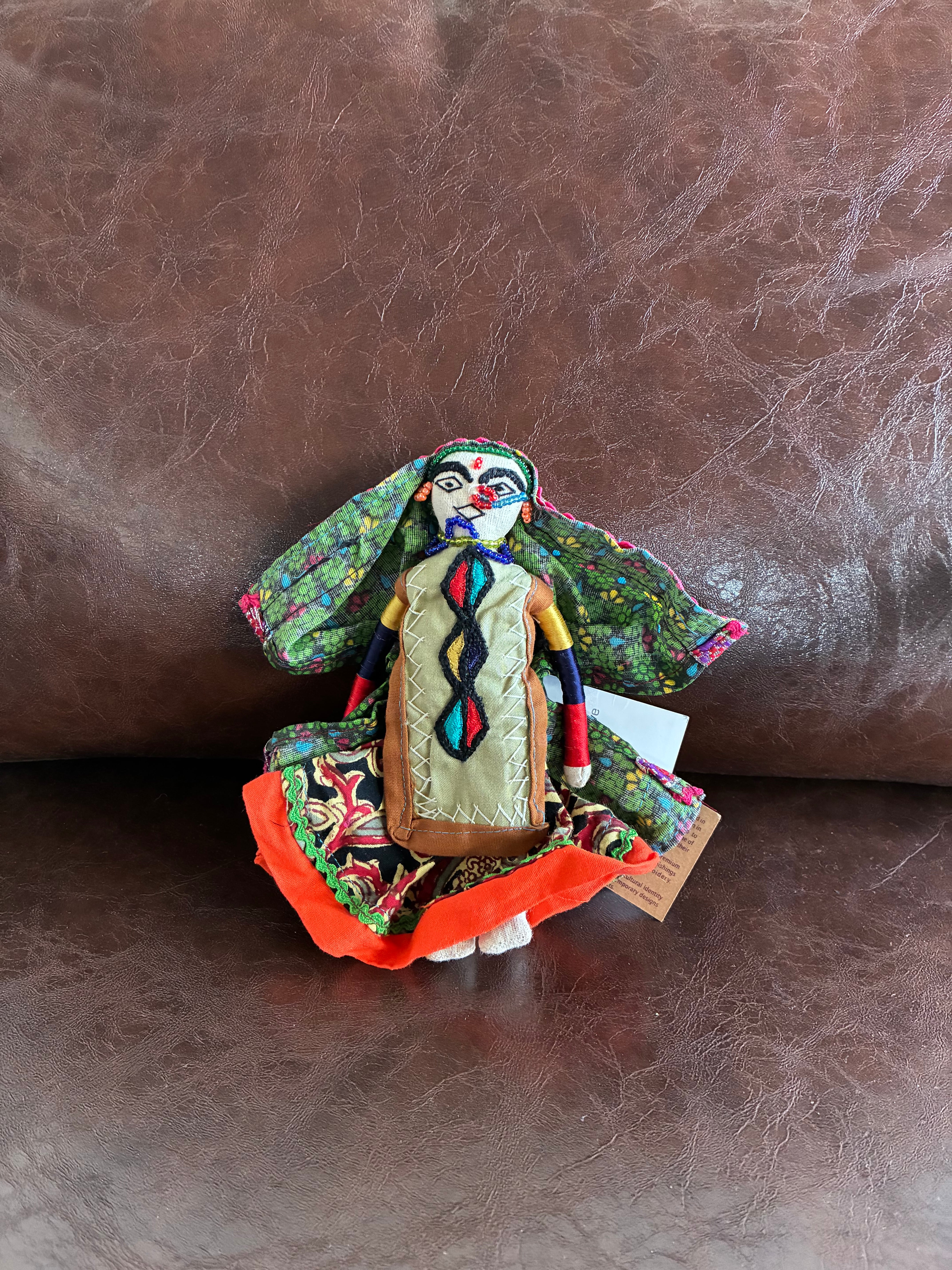 ビーズのアクセサリーを含め全て手仕事で笑顔の表情が素敵です。