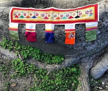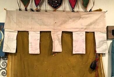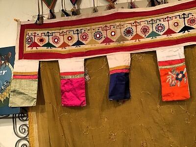 とても古くて人々の生活が垣間見えるような素朴な刺繍のトーラン(暖簾)が入荷しました。